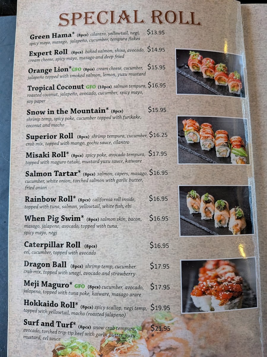 baked salmon, avocado, shiso, mayonnaise, unagi sauce, masago, cream cheese deep fried in tempura