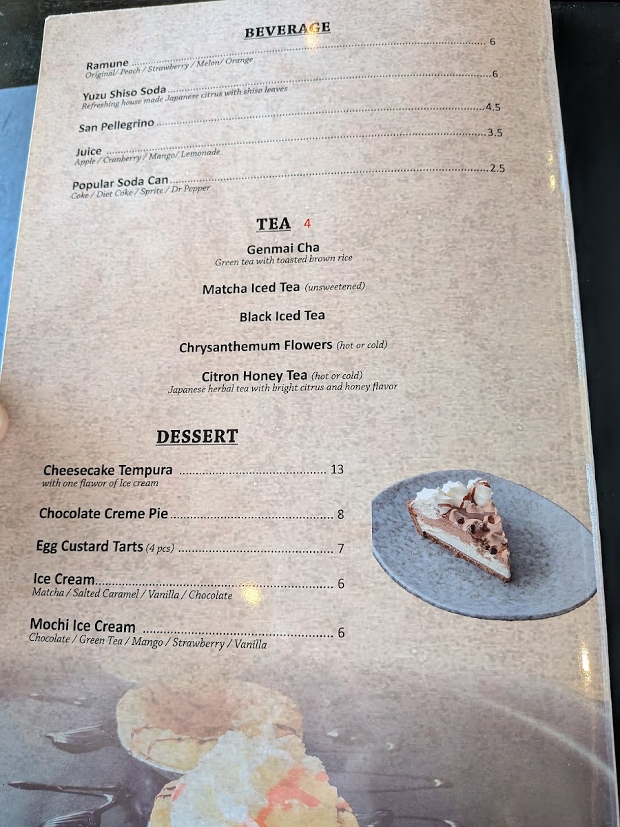 bincho tempura, avocado tempura, kaiware, negi, mustard yuzu sauce and maguro tataki sashimi on top